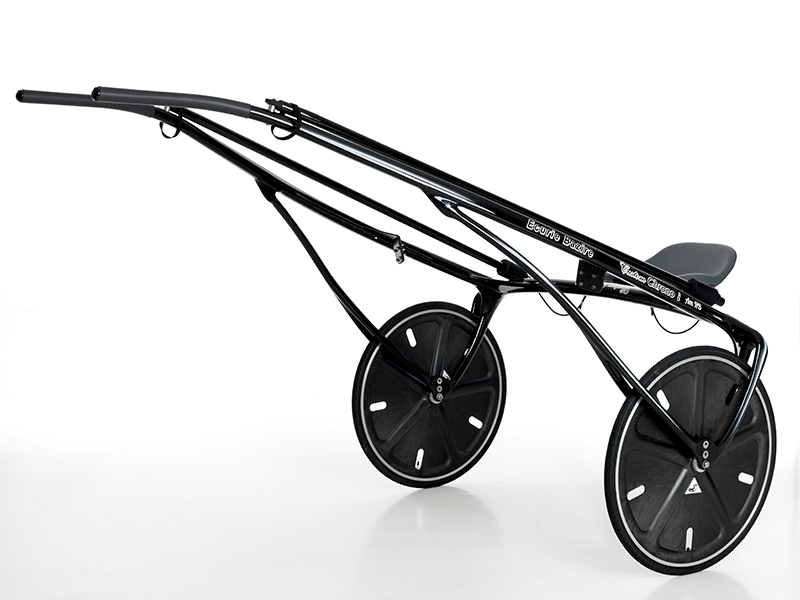 Chrono I is de upgrade van de sulky chrono van Custom. De Chrono I heeft een langer zadel dan de gewone Chrono om nog meer lift te hebben.  Dit is het topmodel uit de Custom Sulky familie .Niets werd aan het toeval overgelaten aan deze Custom Chrono sulky. Volledig vervaardigd in carbon en de lichtste sulky op de markt . De bomen, vorken en brug van de Chrono zijn versterkt met kevlar. Deze sulky heeft een serienummer en ingebouwde microchip. Opgelet! deze sulky kan enkel met optionele Custom Chrono wielen of FMt wielen met een smalle as geleverd worden. Dit teneinde de sulky super stabiel te maken. Zie wiel FMT carbon.  de beschermhoes wordt er gratis bijgeleverd.